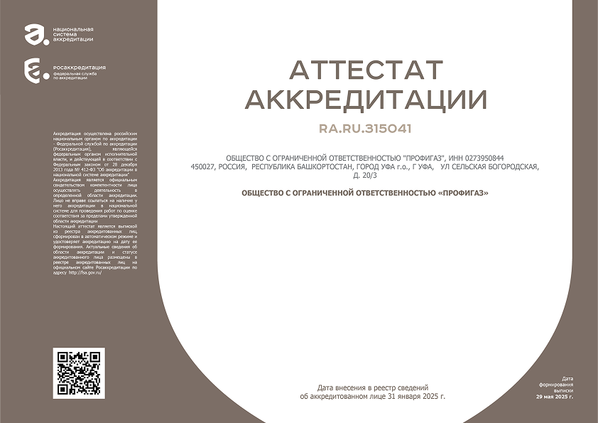 ООО «ПрофиГаз» осуществляет поверку счетчиков газа согласно своей сферы деятельности и Аттестата аккредитации № RA.RU.315041. Работы выполняются в соответствии со статьей 13 Федерального закона № 102-ФЗ «Об обеспечении единства измерений», которая устанавливает круг организаций, допущенных к проведению измерений и аккредитованных соответствующими органами государственного надзора.